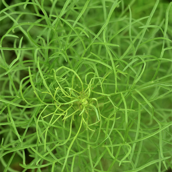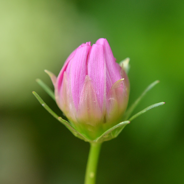 まだ小さく青いコスモスのつぼみ