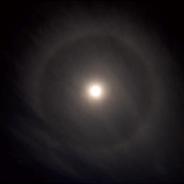 そんなことをしているうちに、月に雲がかかり始めました。するとなんということでしょう。月暈が出現したのです。